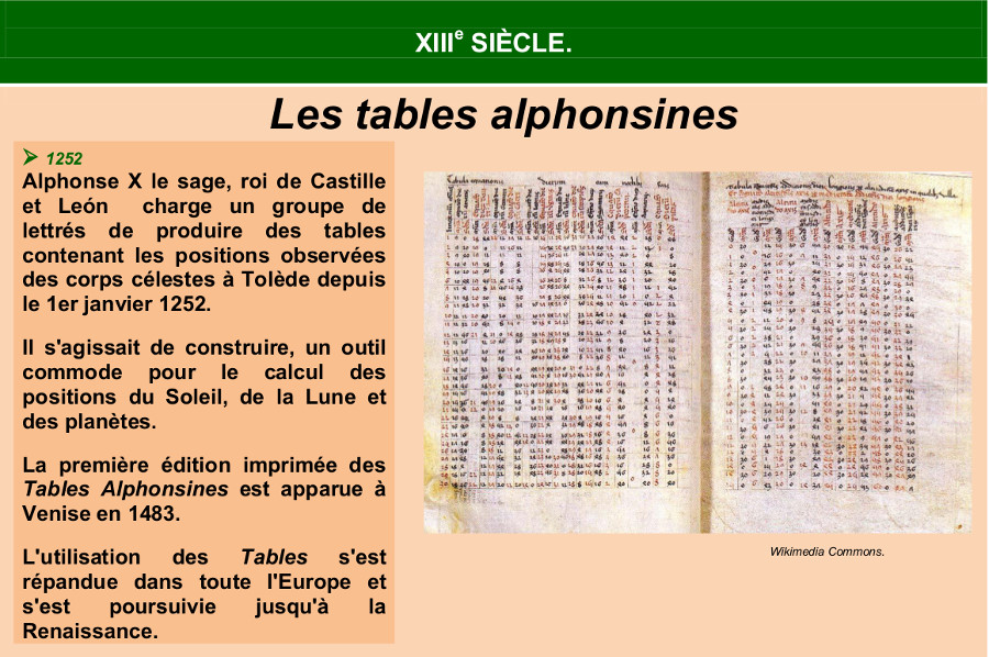 Association Méridienne Atelier Histoire de la navigation Méthodes Les tables alphonsines
