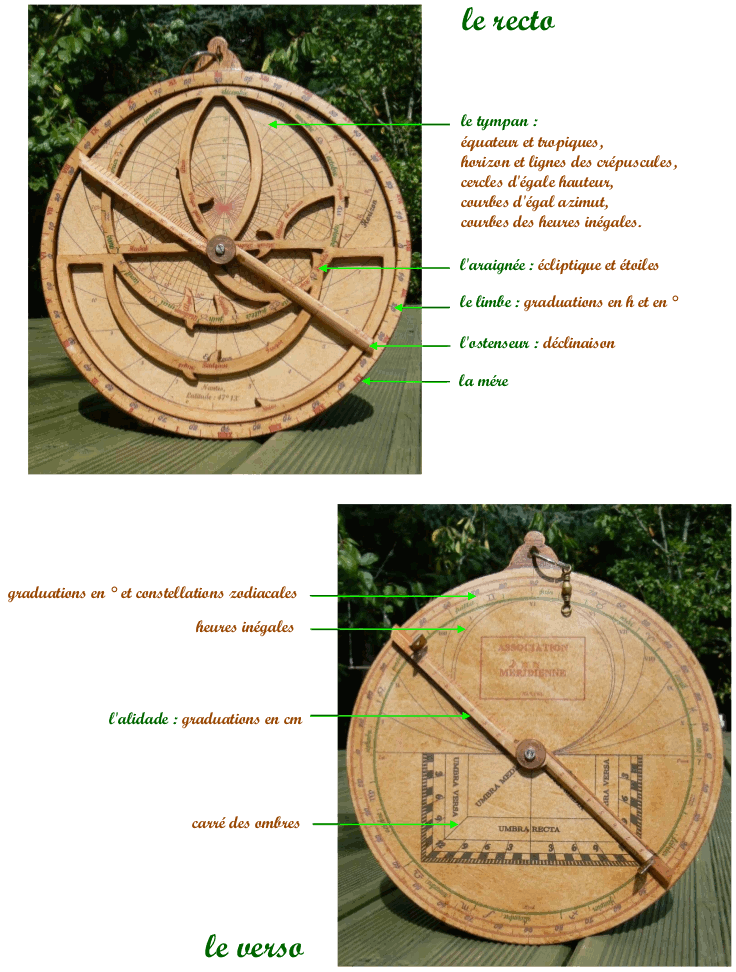 Les différentes parties d'un astrolabe