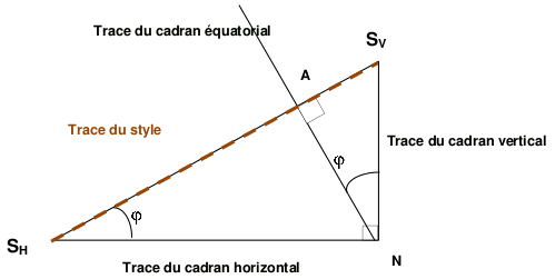 Les tracés peuvent se faire de différentes façons en utilisant les calculs de la fiche "calculs et tracés des graduations", évidemment, calculs effectués avec la latitude du lieu et les dimensions utilisées pour la construction.
