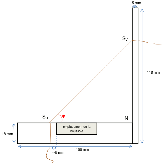 Par exemple, prendre NSH = 6 cm, calculer la hauteur SVN en tenant compte de la latitude ϕ du lieu.