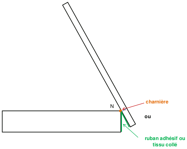 - Deux très petites charnières en laiton ou un morceau de ruban très adhésif ou un petit morceau de tissu à fixer avec une colle très résistante.