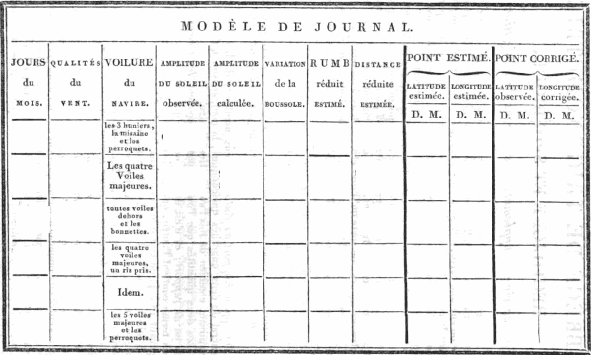 navires. En 1683 Le Cordier fait paraître un ouvrage intitulé Journal de navigation.