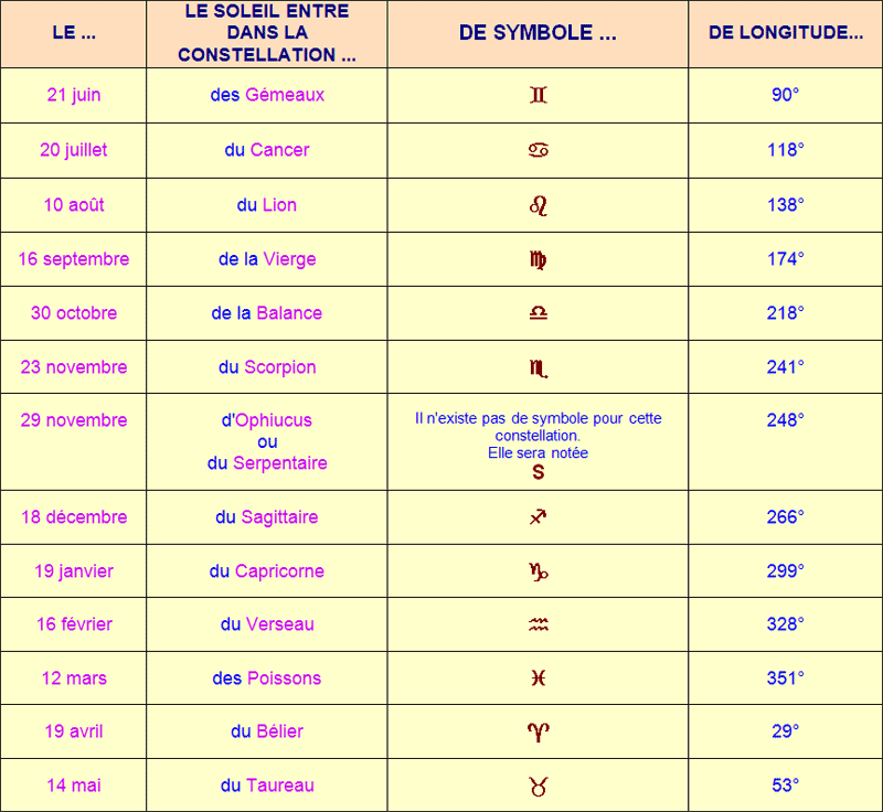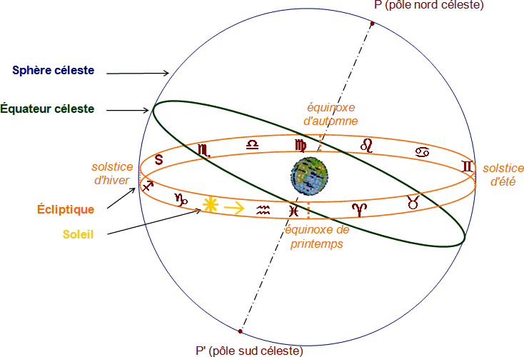 La sphère céleste et la position des constellations zodiacales.