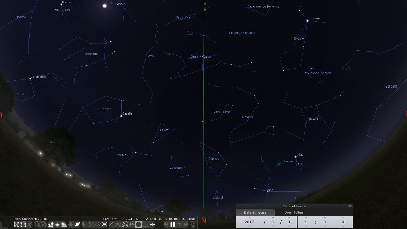 Ciel de Greenwich le 9 mars à 0 h TU