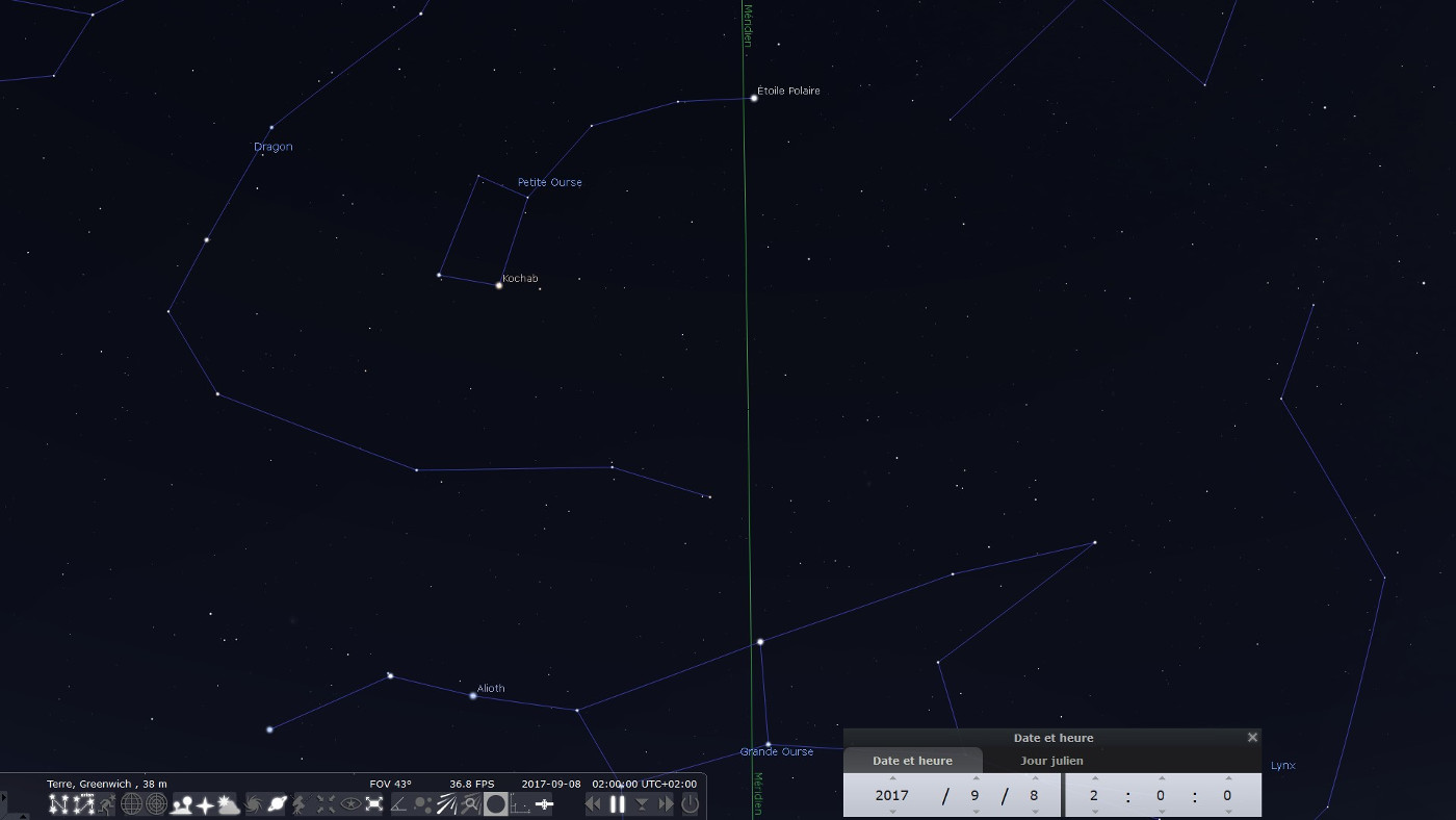 Le 8 septembre, les étoiles Dubhe et Merak de la Grande Ourse sont à 0 h (2 h en heure légale en France) à la verticale de l'Étoile Polaire et au-dessous de celle-ci.