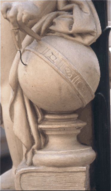 Statue du XIXe siècle du passage Pommeraye à Nantes représentant une sphère céleste, dite par les marins "tête de veau". (Photographie d'Olivier Sauzereau). |