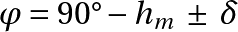 avec hm = hauteur méridienne du Soleil zm = distance zénithale méridienne du Soleil δ = déclinaison du Soleil