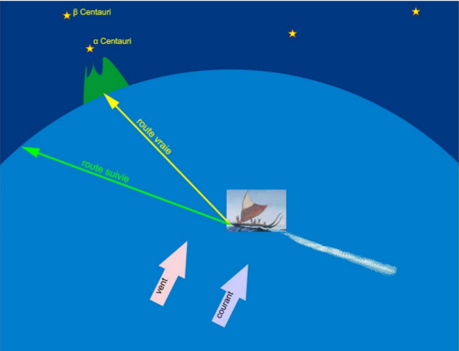 En théorie pour une navigation Nord-Sud, suivre l'axe Dubhé et α - β du Centaure doit permettre au bateau d'atteindre sa destination.