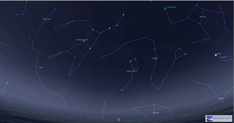Dubhé (α) de la Grande Ourse va disparaître sous l’horizon.