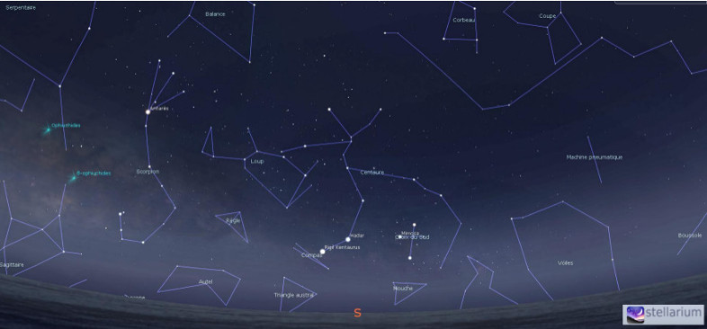 Rigil (α) et Hadar (β) du Centaure sont visibles sur l’axe N-S.