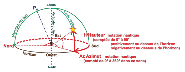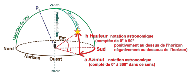 Le plan Équateur et le plan Écliptique sont rabattus sur le plan horizon.
