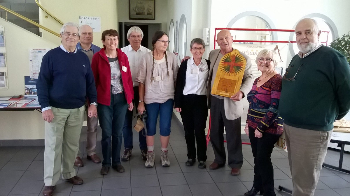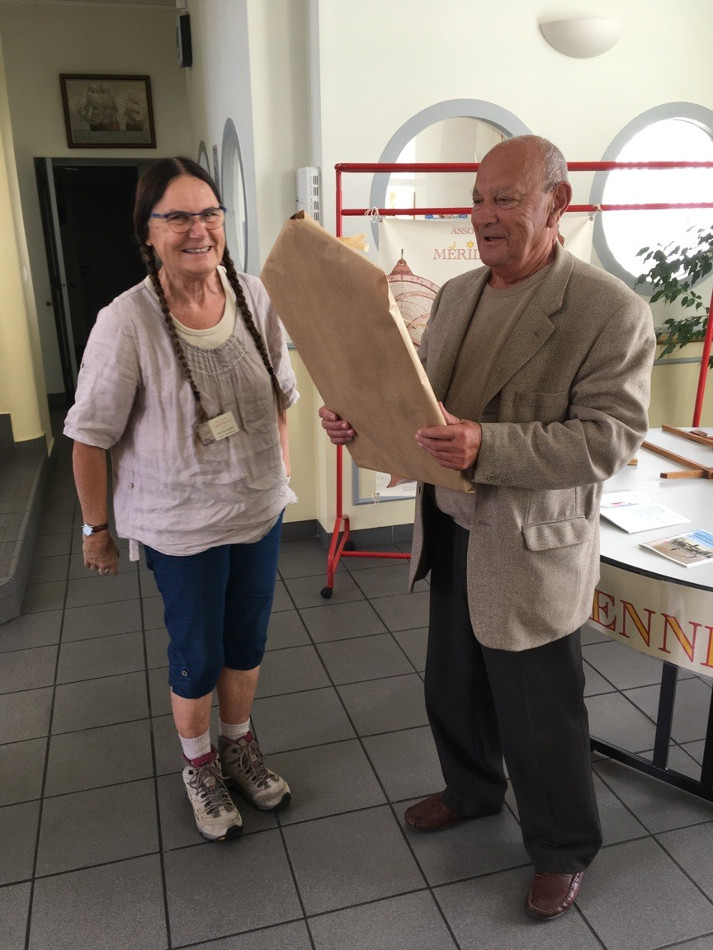 Renée Péron remet à Jean-Marie Gilory, président d'honneur de la Fédération Maritime, un renard fabriqué par Méridienne.